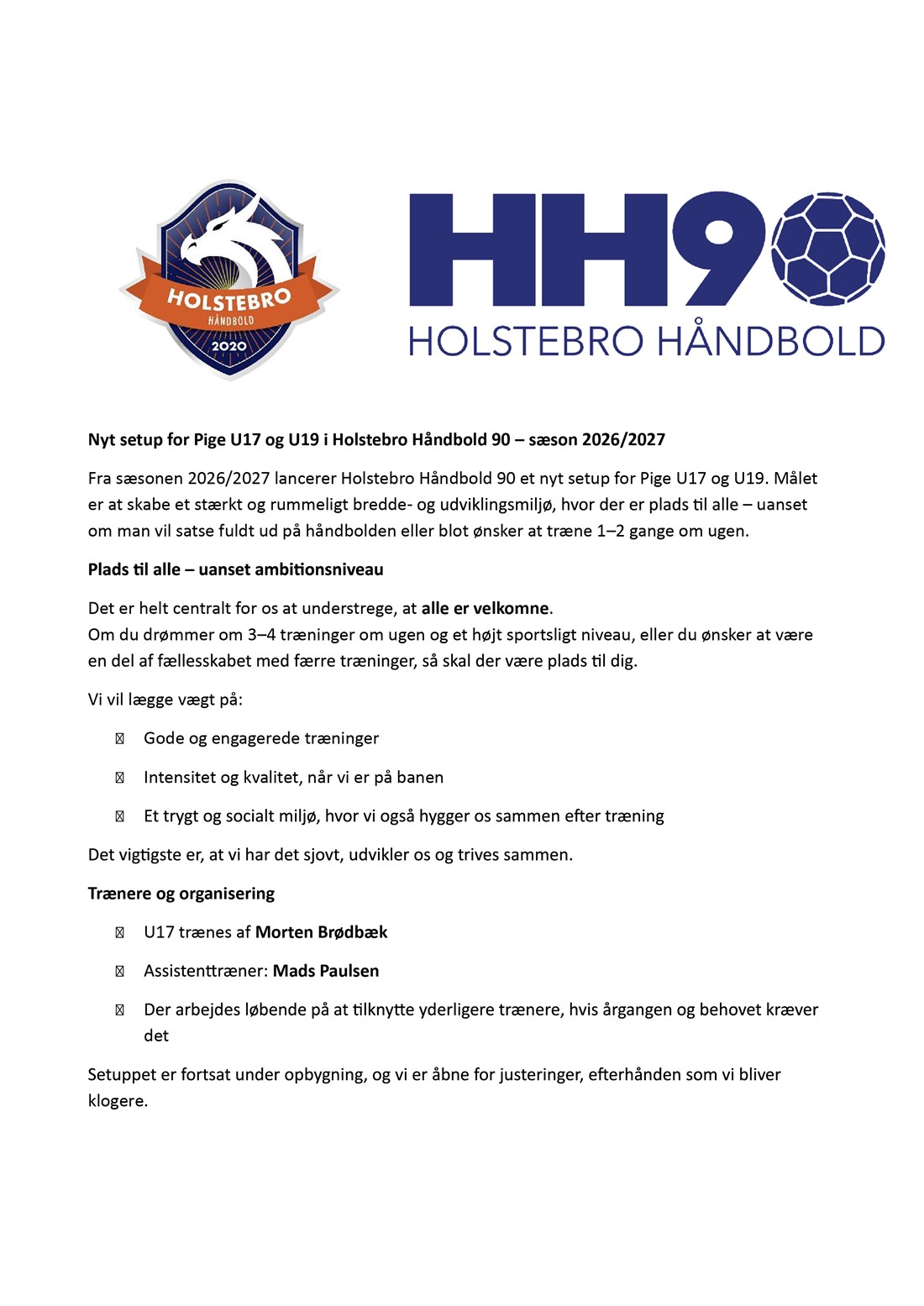Nyt setup for Pige U17 og U19, sæson 2026-27